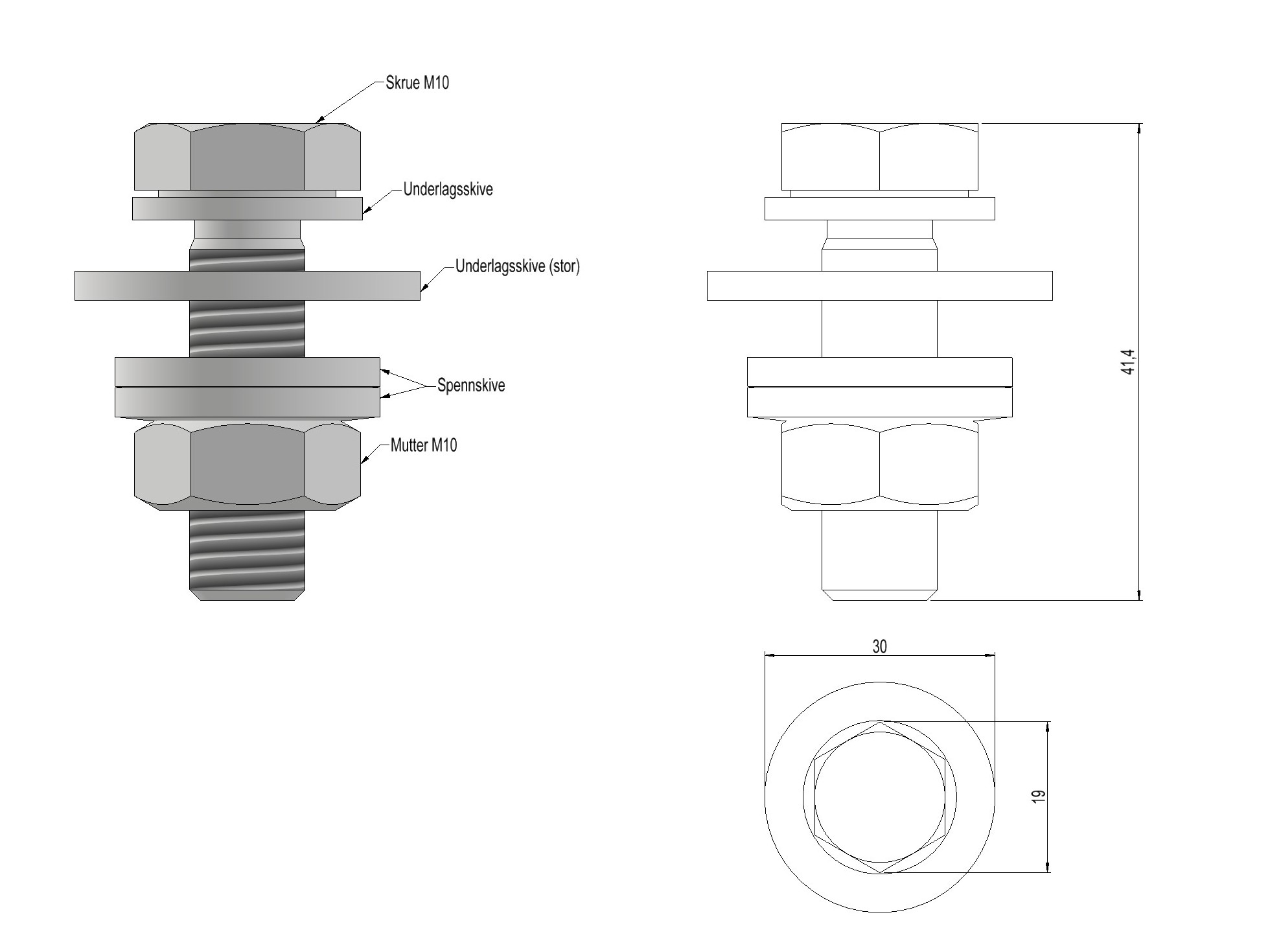 Bolt M10 for grounding crossbars with shoe (not included).