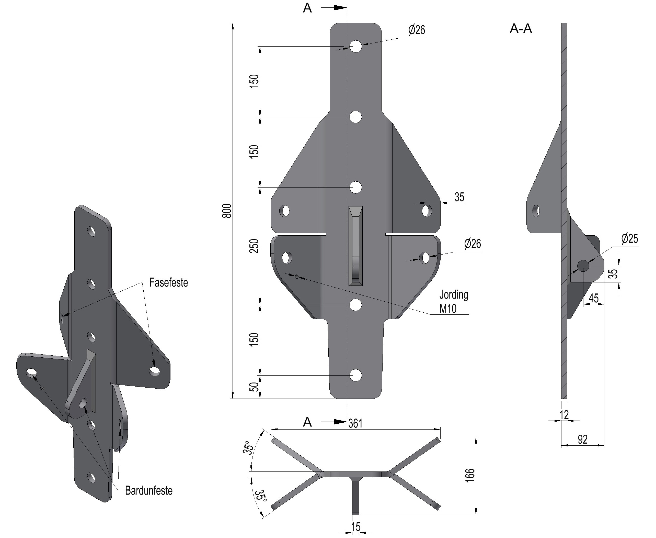 Phase/wire bracket for an angle of 60-80.