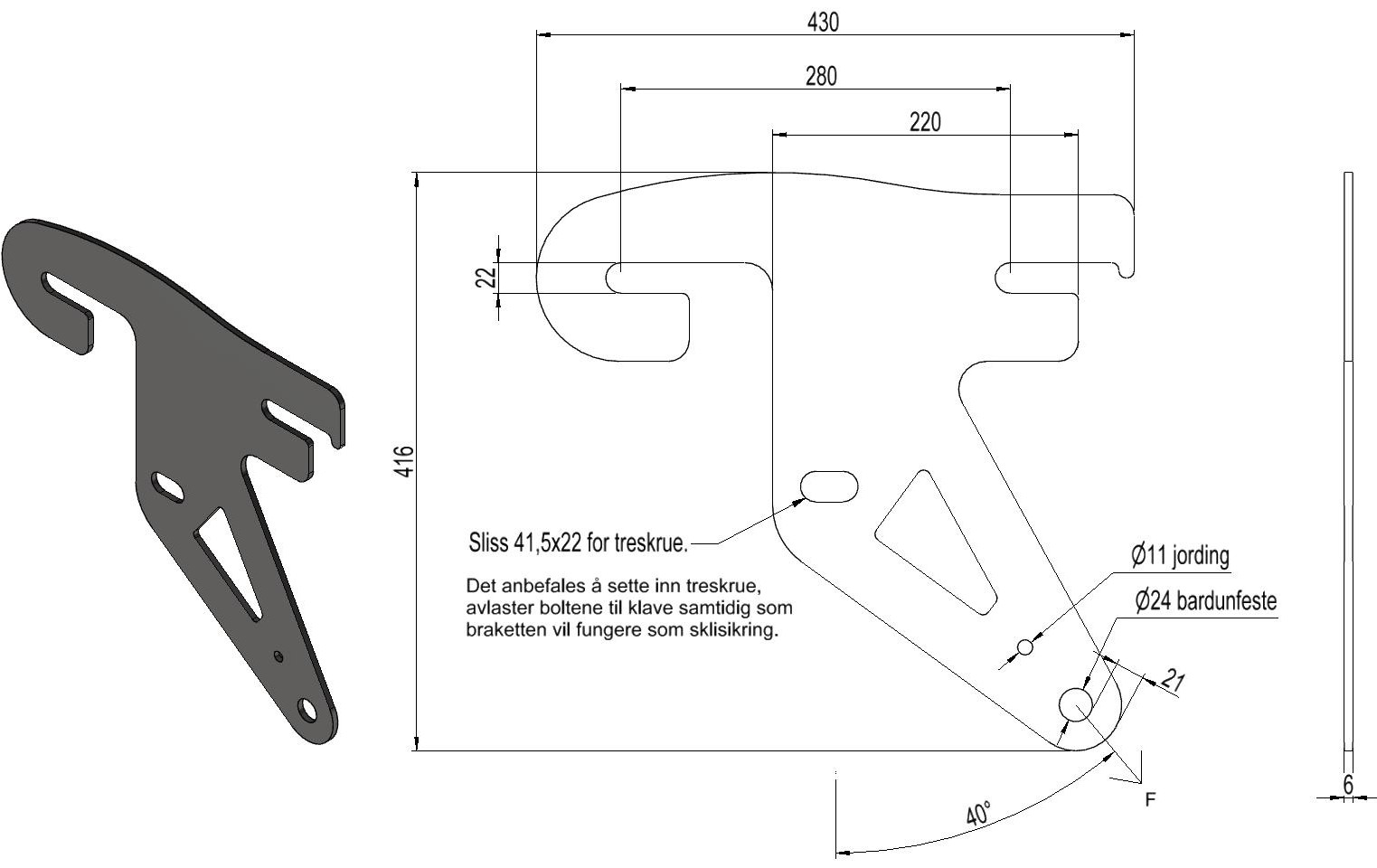 Bardunfeste for montering mellom travers og stolpe, hektes på masteklavens bolter. Passer til traverser med 280mm slissavstand.