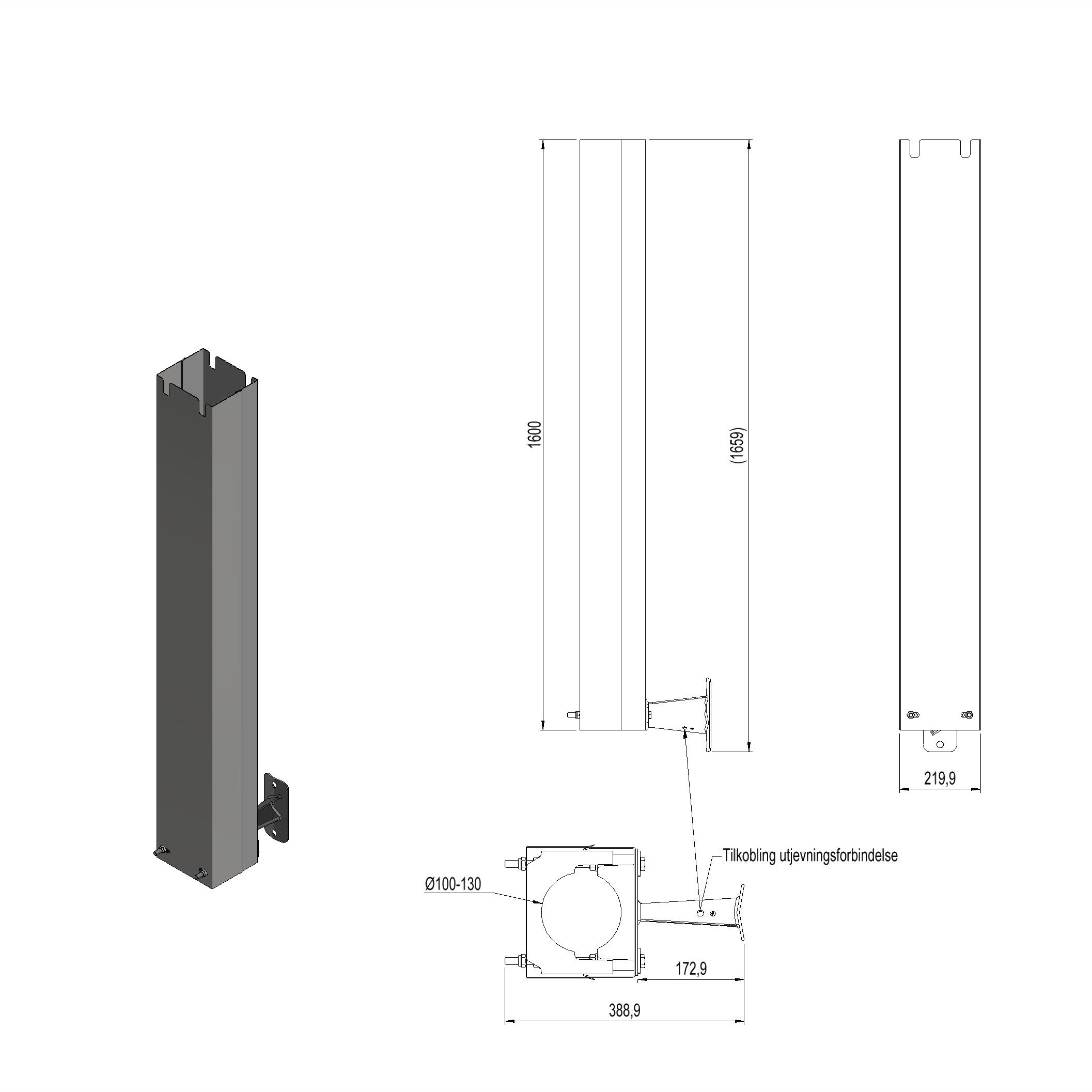 Forlenger kabelnedføring. For 1 kabel, Ø100-130mm, lengde 1,6m. Med umagnetisk bakdeksel, anbefales brukt i anlegg med en-leder kabel.